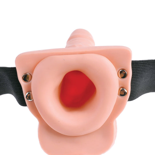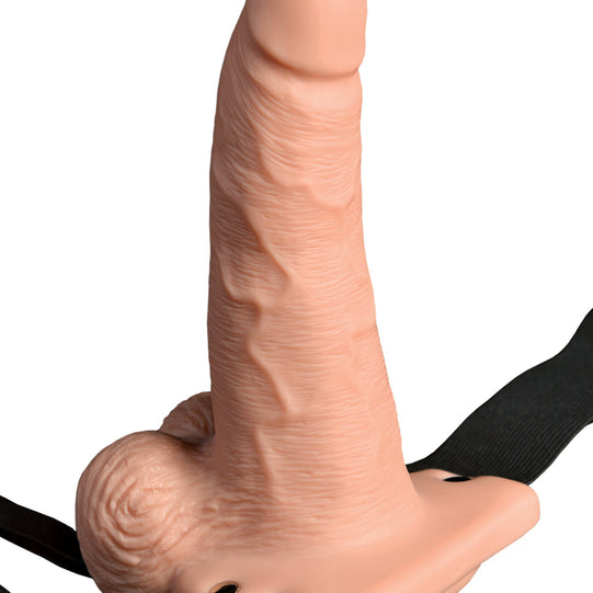 Fetish Fantasy Vibrating 6 Inch Hollow Dildo w/Balls & Strap-on Harness w/ Remote - Vanilla