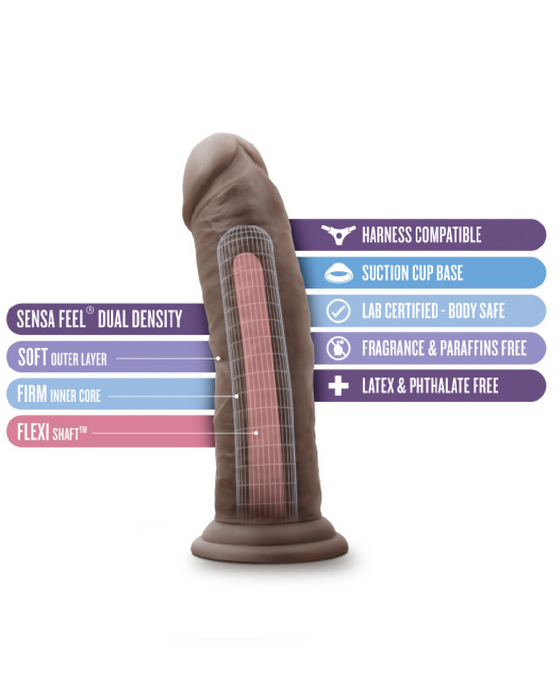 Au Naturel 8 Inch Realistic Feel Dual Density Suction Cup Dildo - Dark Chocolate