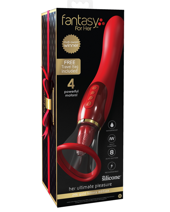 Treat yourself or your lover to the ultimate luxury. This is a 24k trimmed verion of the world famous Ultimate Pleasure Vibrator in a sensual red.