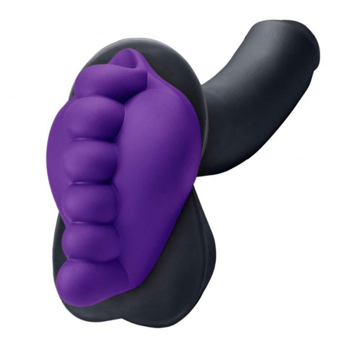 Making strap-on harness play even MORE thrilling! Get your grind on with this uniquely contoured base that fits on the end of your dildo and allows the harness wearer to experience amazing sensations. Honeybunch features a vibrator pouch that holds most bullet vibrators (not included), allowing you to have extra stimulation just where you want it! The round, plump, protruding nubs feel amazing on their own as you grind, or add a bullet to the sleeve for even more sensation. Best of all, Honeybunch protects the wearer from discomfort or bruising so you get all kinds of cushion for the pushin'.