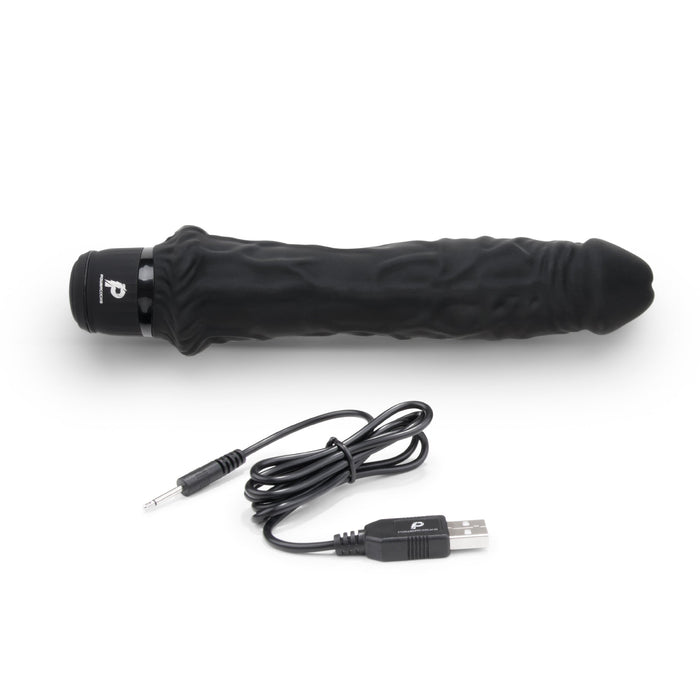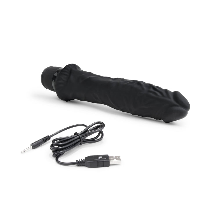 The perfect long, thick, realistic vibrator for challenging anal or vaginal play! If you want ultra-realism in your vibrators, you'll love the Powercock. Made of silky-smooth silicone, this vibe features a slight curve, long, thick shaft, plus all those veins, creases, and a pronounced head you will love. With 3 speeds and 4 patterns of vibration, plus a USB rechargeable motor, you can ride this Powercock all night. The simple push button control on the bottom of the textured sure-grip base means no fumbling around. And yes, the Powercock is waterproof so you can enjoy it in the shower or tub! The flexible shaft features a safety-stop collar at the base so you can experience safe anal play.