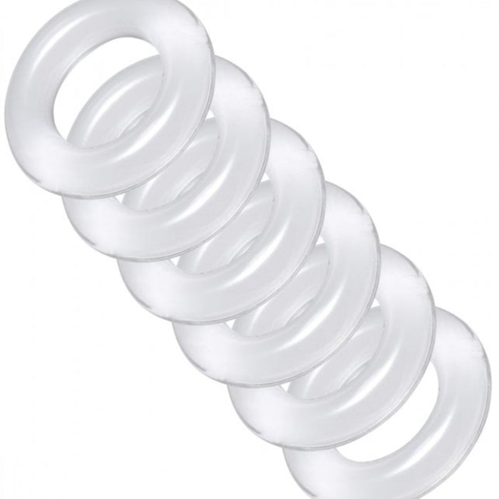 Discover new levels of pleasure with this customizable ball-stretching kit! Perfect for both beginners and those who want to push their limits, this set of six stretchy rings allows you to add tension one ring at a time. Find the perfect tugging sensation as your scrotum is pulled downward more and more with each ring you add. For even more excitement, use one as a cock ring to keep your member hard and pulsing with sensitivity while your balls are stretched.