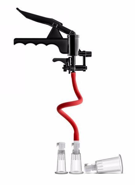 Love clit pumping and ready to take it to the next level? Temptasia - Clitoris Pleasure and Enhancement System is professional grade for serious clitoris pumping. Used to increase sensation to your clitoris and nipples thereby enhancing pleasure. Place cylinder over your desired erogenous zone. Use trigger to create the desired suction. Featuring an air release valve for easy removal. You can maintain constant suction or practice pumping, releasing and pumping again to simulate oral sex. Air pressure gauge measures how much you are pumping your clit. The cylinder can be detached leaving your clitoris or nipple suctioned to the cylinder. Includes 3 cylinders of various sizes each offering a unique sensation and different levels of enlargement. Enjoy the enhanced pleasure and the unique sensations of clit pumping and the thrill of nipple pumping